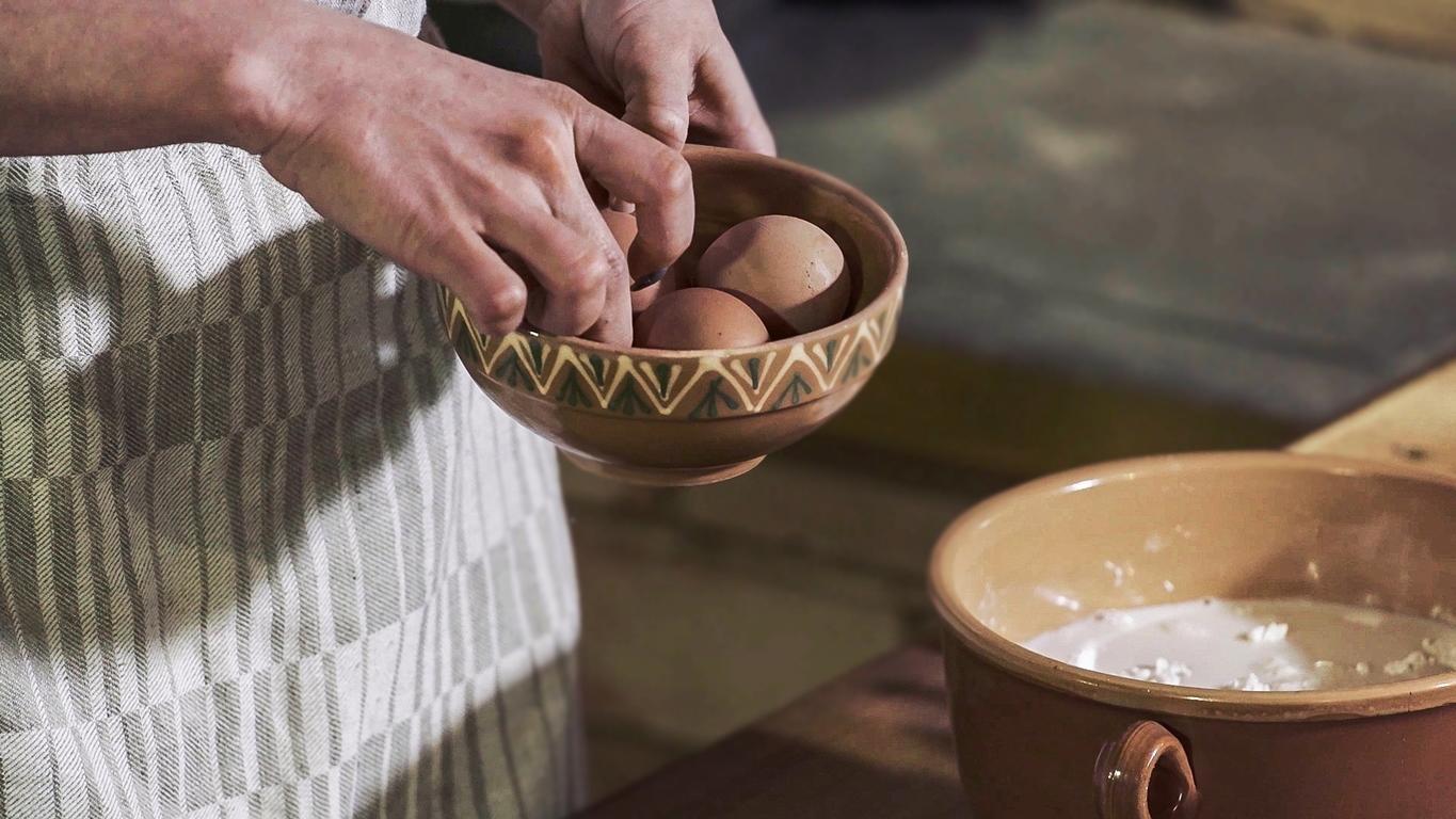 Preparation of dough: Put yeast into a bowl, cover with a pinch of sugar and pour a spoon of lukewarm milk. Stir everything and leave for 20-30 minutes in a warm place to rise. Add eggs into a clay dish, pour the remaining milk and stir everything well. Pour yeast, stirring constantly, pour flour and knead the dough. Since the dough is sticky, constantly lubricate hands with grease. Knead the dough for about 20 minutes until it becomes homogeneous and elastic.