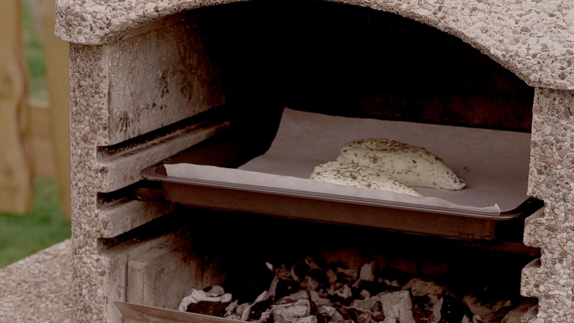 Put cheese in a pan, bake in medium heated furnace until it is brown and tender.